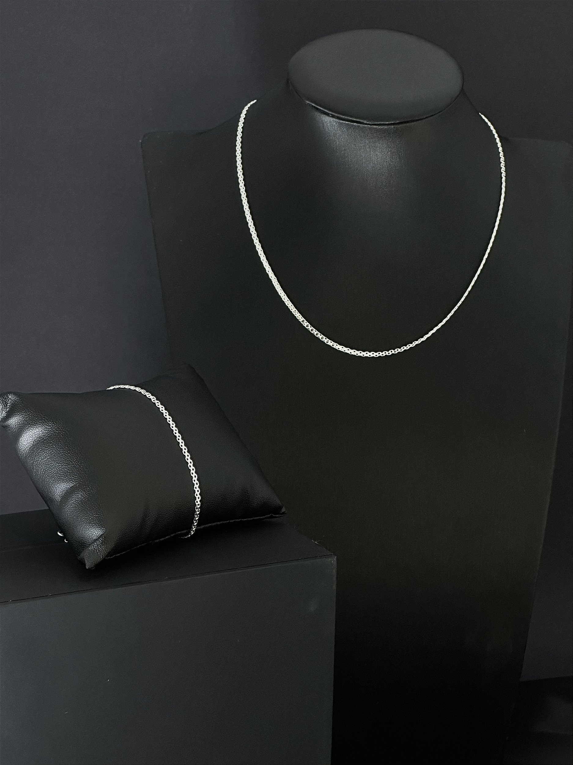 Kit composto por colar de 40 cm e pulseira modelo Bismark, produzidos em prata 925 legítima com acabamento polido e brilho intenso. Peças hipoalergênicas, resistentes e confortáveis, ideais para o uso diário. O design Bismark é conhecido pela sua elegância e estrutura marcante, perfeito para quem busca um conjunto de alta qualidade e presença sofisticada.